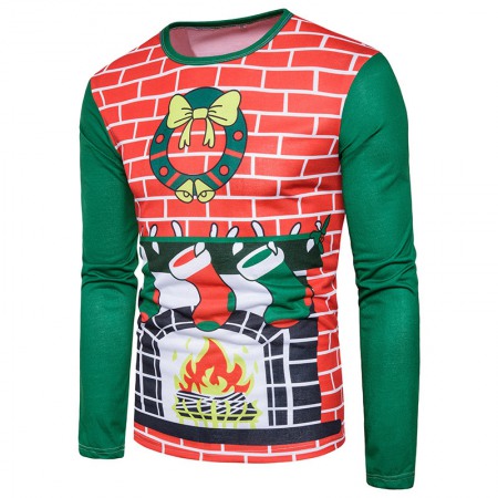Hot Sale New Fashion 3D Fireplace Socks Christmas Digital Printing Plus Size Long Sleeve T-Shirt