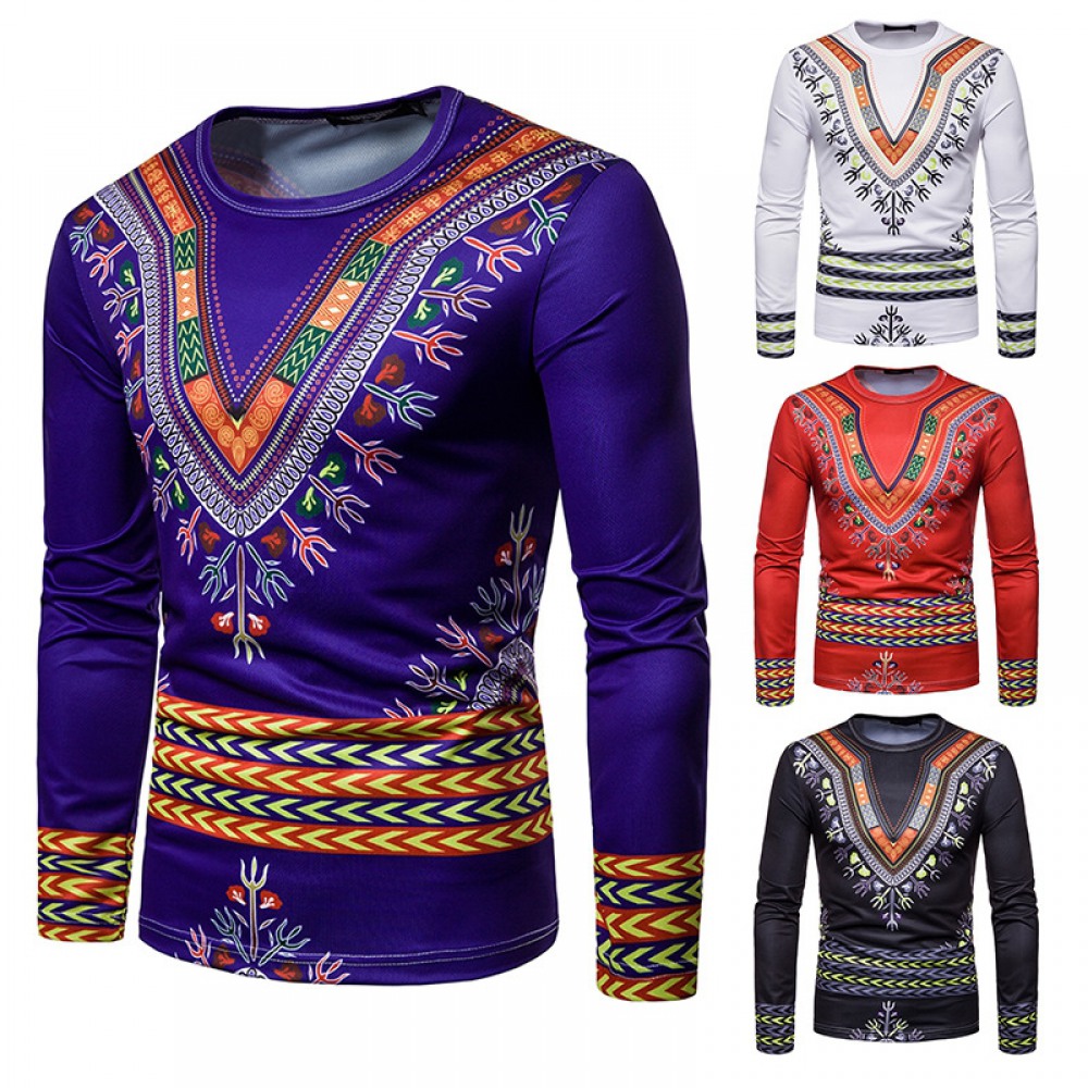 Men's Personality Ethnic 3D Printing Round Neck Long Sleeve T-Shirt