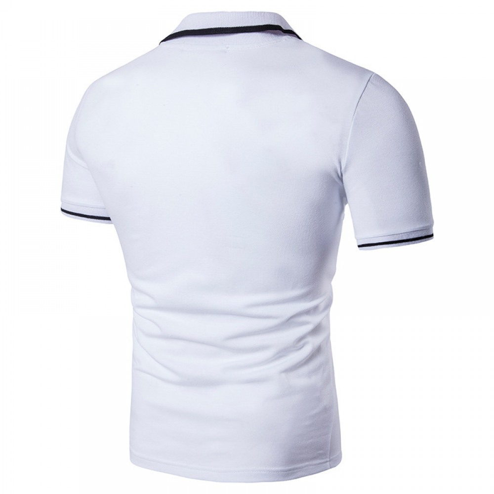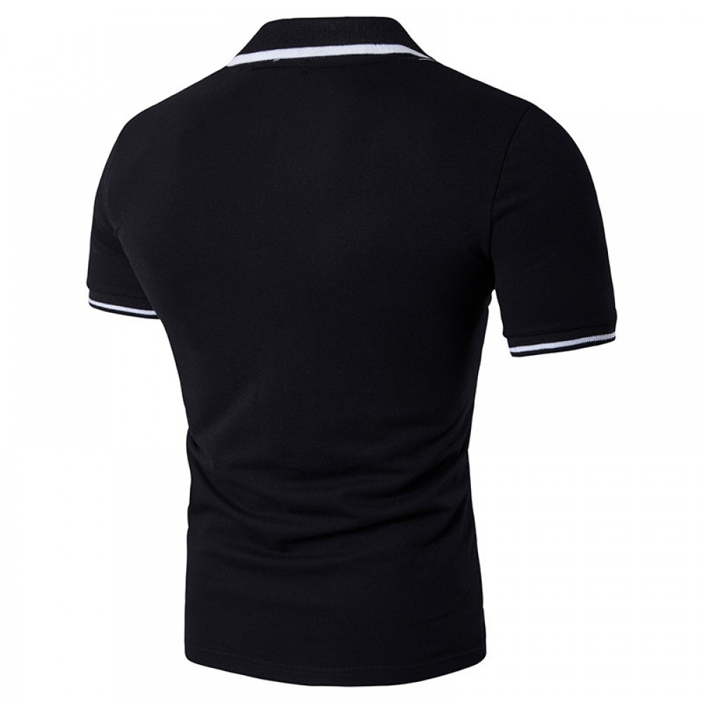 Men's Style Simple Black and White Striped Lapel Short Sleeve Plus Size T-Shirt