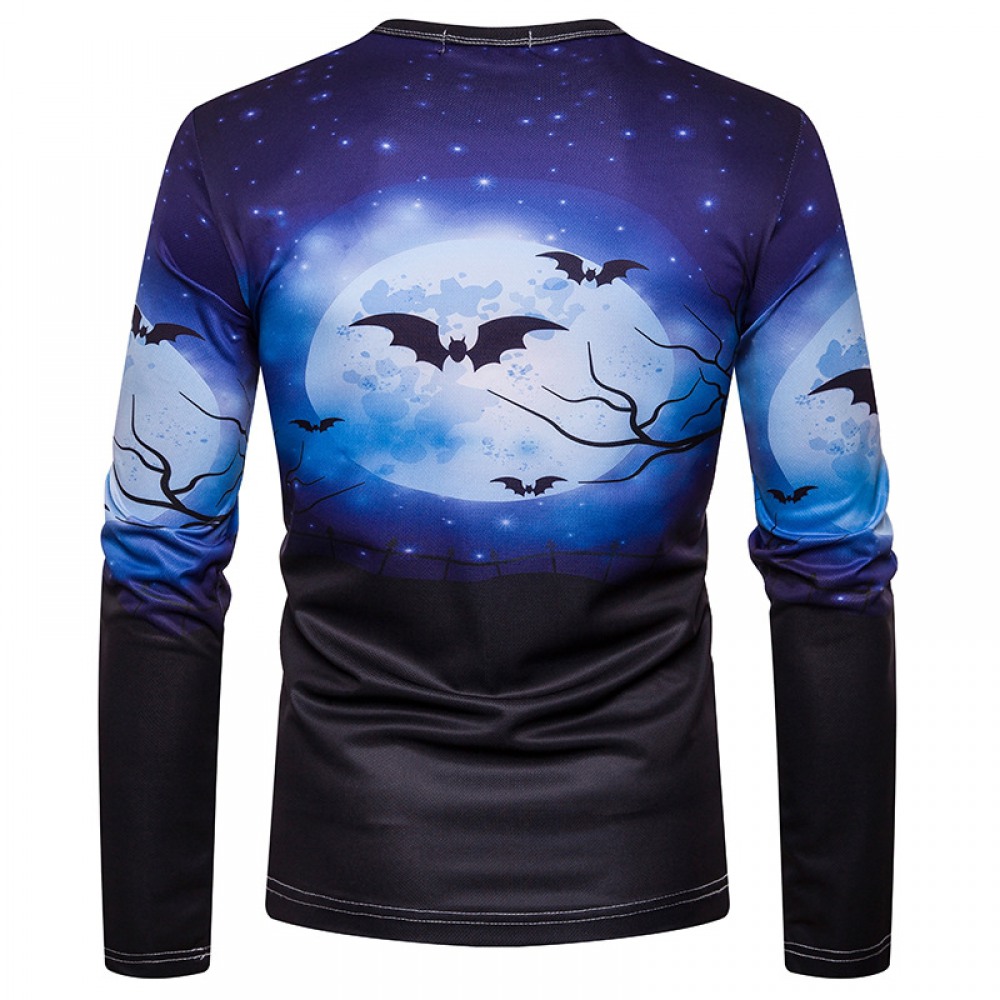 New 3D Digital Printed Pumpkin Head Picture Halloween Long Sleeve Round Neck T-Shirt