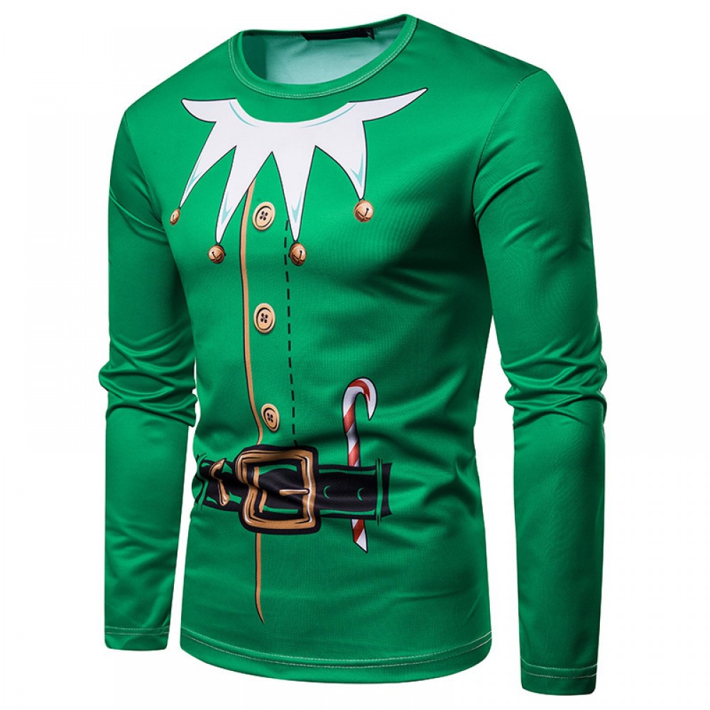 New 3D Personality Printing Fashion Men's Christmas Long-Sleeved T-Shirt
